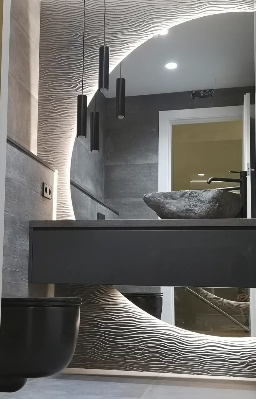 Creació d’un mirall de bany totalment a mida amb un disseny orgànic i retroil·luminació LED.
